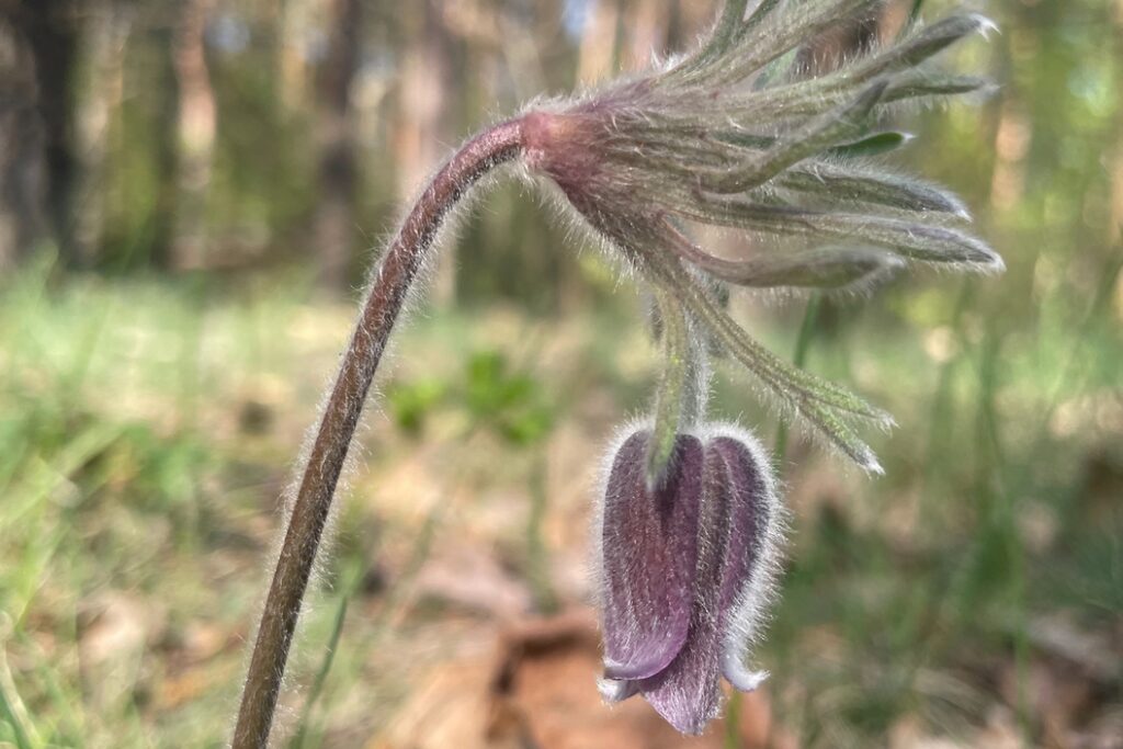 Są one fioletowe, srebrzysto owłosione. To właśnie stanowisko sasanki łąkowej zupełnym przypadkiem udało mi się odnaleźć kilka lat temu w Lesie Bemowskim na wycieczce rowerowej. Na szczeście ze względu na swoją kolorystykę sasanka łąkowo bardzo dobrze maskuje się i jest trudna do zauważenia przez turystów odwiedzających to miejsce!